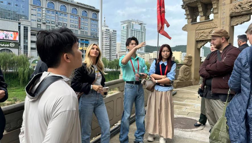 Another student, Wu Keyang, served as an accompanying interpreter, providing language support for international bloggers during their visits to the Yan’an Revolutionary Memorial Hall, the Yan'an Museum, and the Hukou Waterfall Scenic Area. Demonstrating strong interpreting skills and the ability to adapt swiftly to various communication contexts, he played a key role in facilitating meaningful cross-cultural dialogue. Through his efforts, international guests were able to gain a deeper appreciation of the region's revolutionary legacy, rich traditions of Red Culture, and diverse forms of intangible cultural heritage.