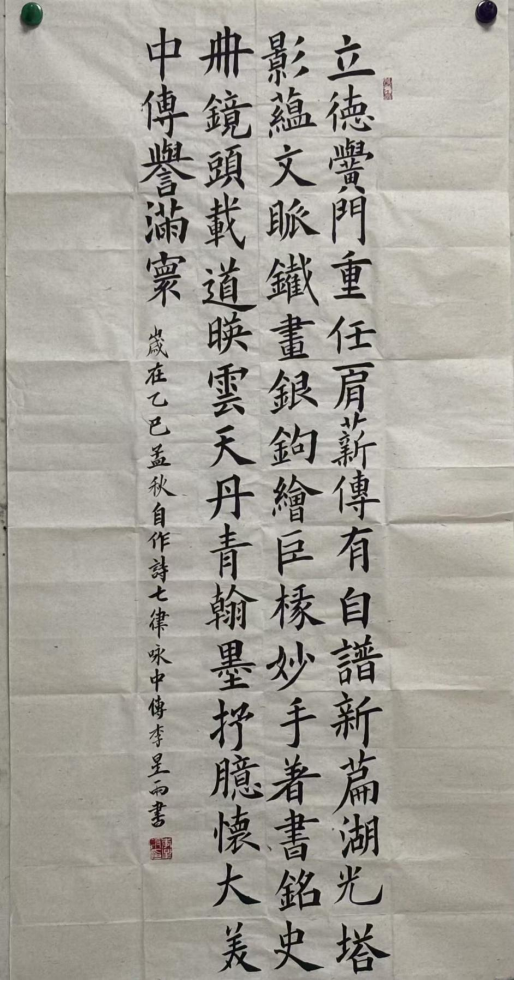 “Seven-Character Regulated Verse: Ode to CUC,” calligraphy by Li Xingyu (Class of 2024, New Media Arts), in Regular Script (Kaishu). Photo courtesy of CUC.