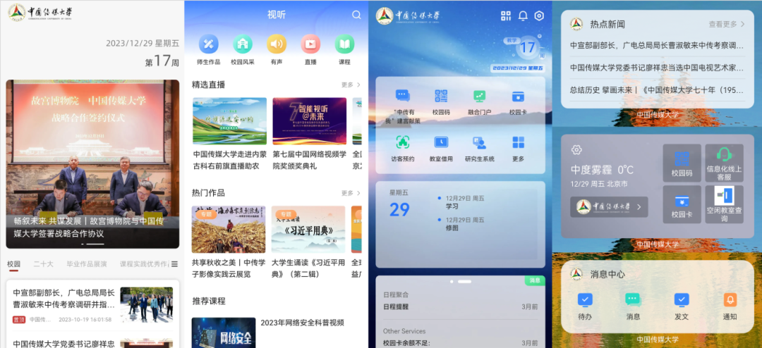 In December 2023, the China Media University (CMU) App version 2.0 was officially launched, featuring a refreshed interface, optimized and integrated information, comprehensively upgraded functions, and entering a new stage in its service providing capacity and user experience.
